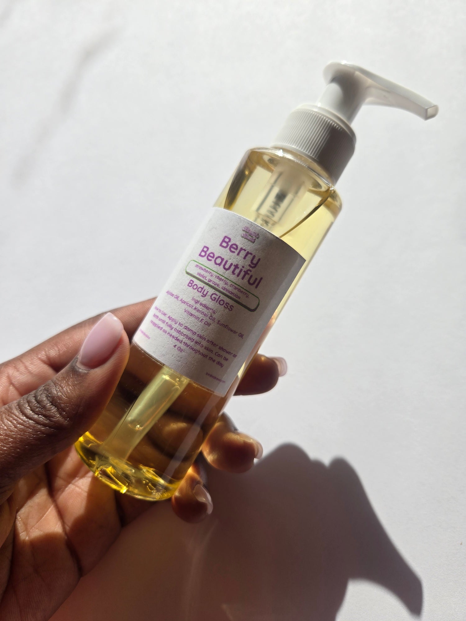 This luxurious and beautifully scented Berry Beautiful body glossĀ is formulated to hydrate, moisturize and give your skin a beautiful glow that will turn heads. Its non-greasy formula makes this body gloss lightweight and easy to absorb into skin quickly and does not clog your pores.Ā